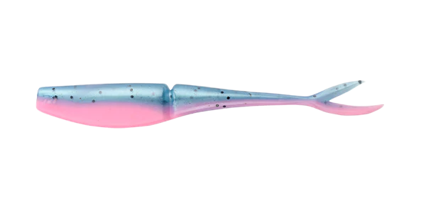 One of the more difficult bait styles from which to stand out from the crowd. The BaitJunkie Jerkshads’ exhibit some of the most incredible swimming action ever witnessed from a ‘fluke’ style bait. The BaitJunkie ‘slim waist’ design principle is in full flight in the 5” Jerkshad, with the prominent waist section segmenting the bait into two separate parts. The vertical fluke tail exaggerates the action and the hinge-like effect of the body makes the tail section of the BaitJunkie 5” Jerkshad swim like no other. A belly slit enables weedless rigging with an EWG style weighted hook and is the rigging method of choice when you want to keep the bait up high in the water column.